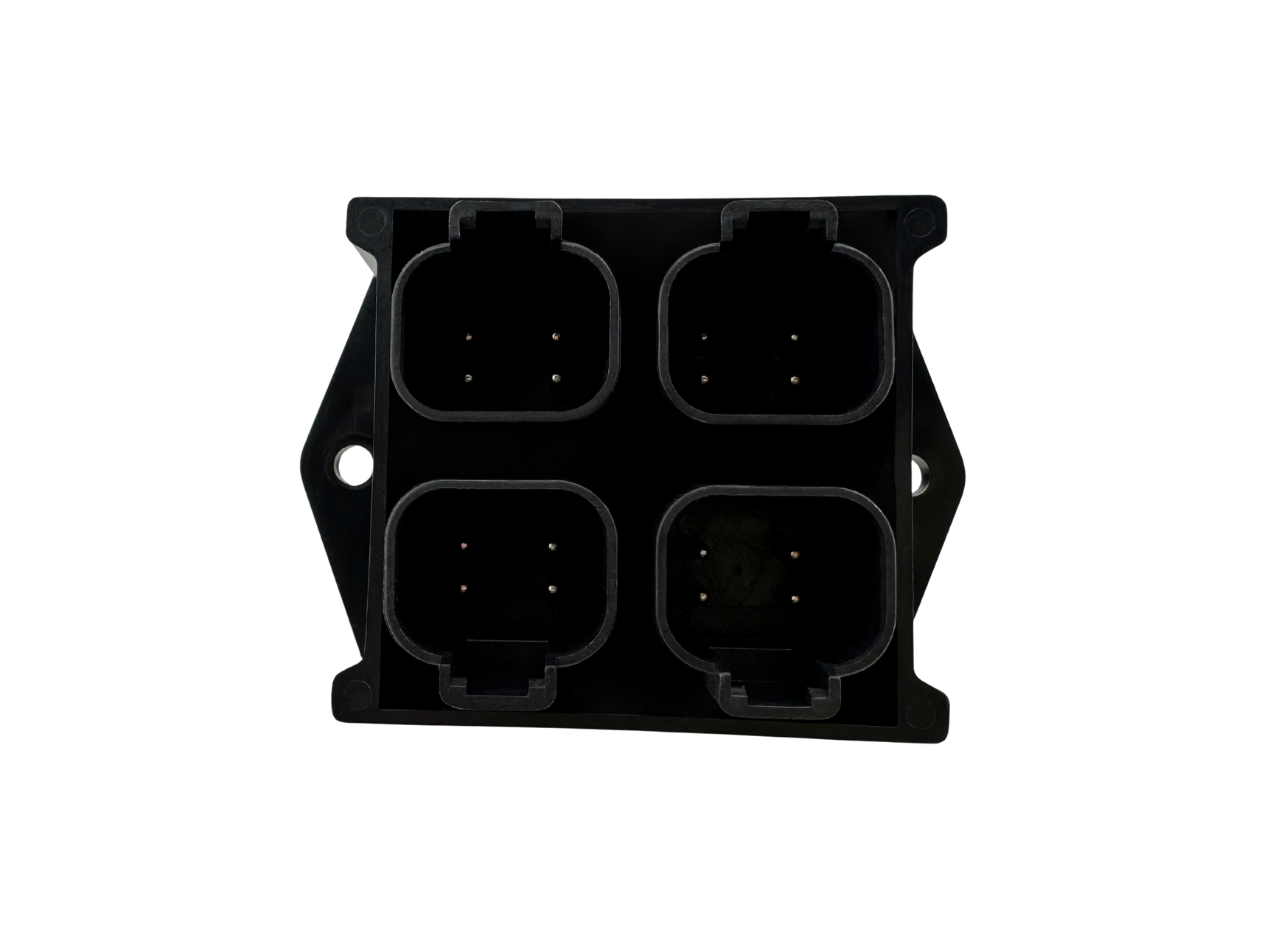 The M-Flex 2×2 CAN Splitter simplifies CAN network integration by providing four Deutsch DT-style connectors for fast and reliable messaging. This module combines CAN communication with power and ground distribution in a single compact assembly, reducing wiring complexity and installation time. Built for durability, the splitter features IP67 ingress protection and operates in extreme temperatures from -40°C to 125°C, making it ideal for harsh mobile environments. With a 12V supply and 13A current capacity, the M-Flex 2×2 CAN Splitter delivers dependable performance in OEM systems where space and reliability are critical.