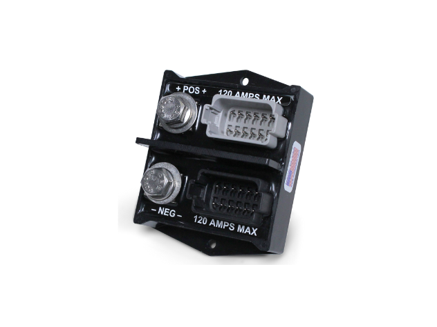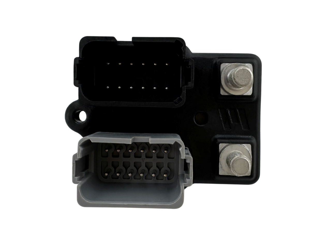 The M-Flex ground block includes two 12-pin Deutsch connectors, with each connector shorting all pins together. This is a great product to terminate your ground returns or just bring many circuits together.
